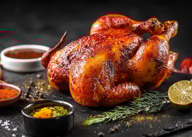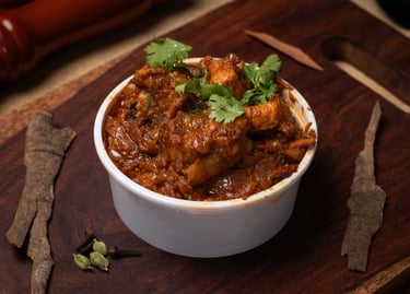 Tender chicken cooked with aromatic spices.